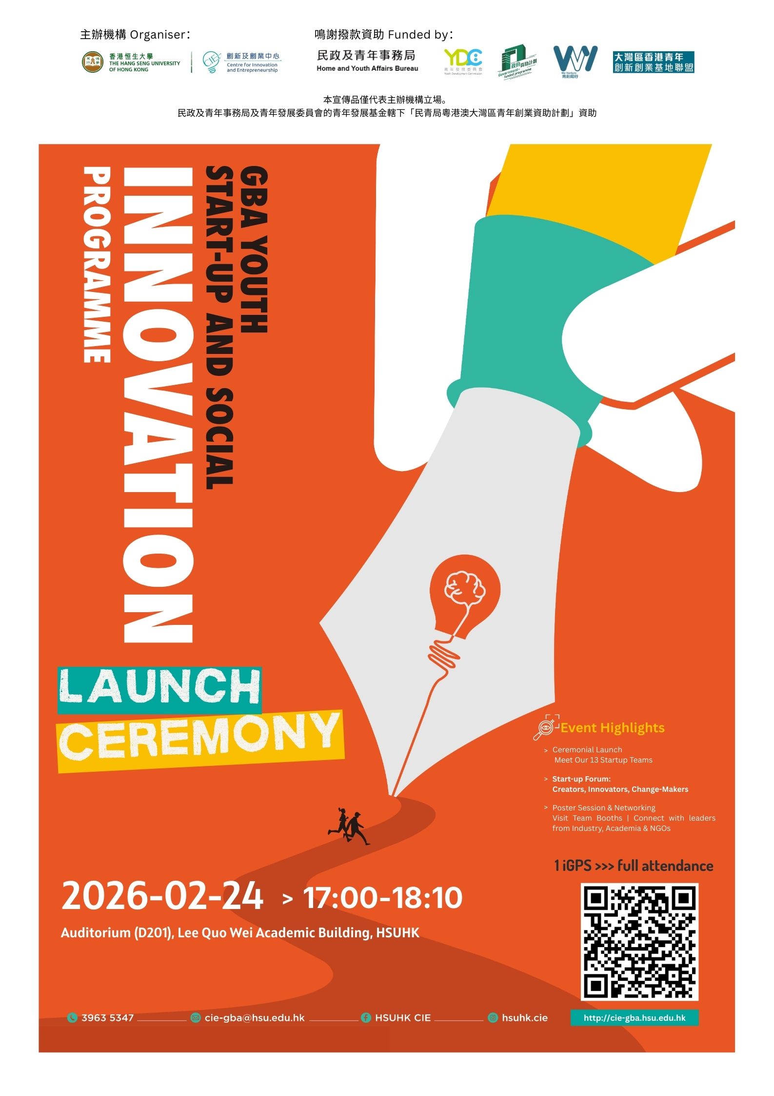 灣區青創及社會創新計劃啟動禮暨創新及創業論壇 過往活動2026年03月18日3KViews0Likes0Comments集合香港恒生大學的學生和校友初創團隊、創業家、還有整個初創生態圈裡你需要認識的人,是一次寶貴的學習、提問、建立人脈的機會!Read More